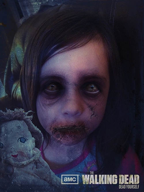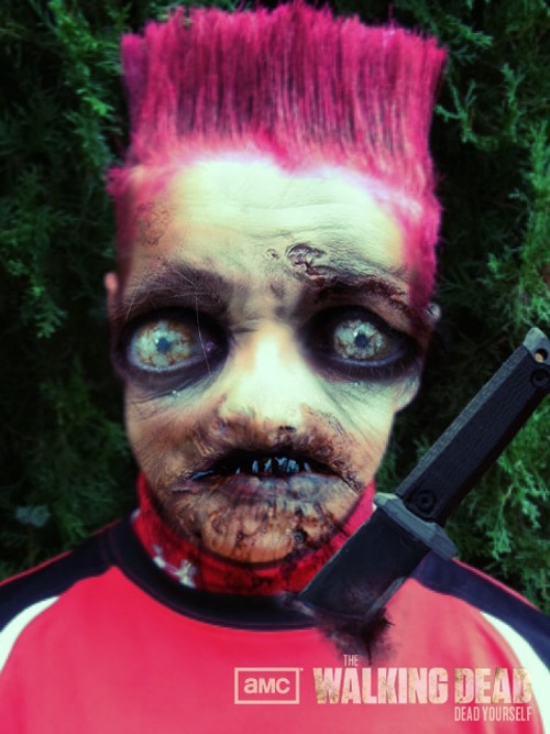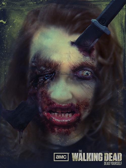 I was on The Walking Dead Facebook page this morning to find out when the new season starts next week, and I saw this Walking Dead iPhone app called Dead Yourself. I try not to write about apps unless I have a chance to experience them for myself to make sure they aren’t lame, and I’m happy to report that I’ve just wasted 20 minutes with one, which means it’s definitely not lame. I turned myself and my family (even my dog) into walkers (pics below).