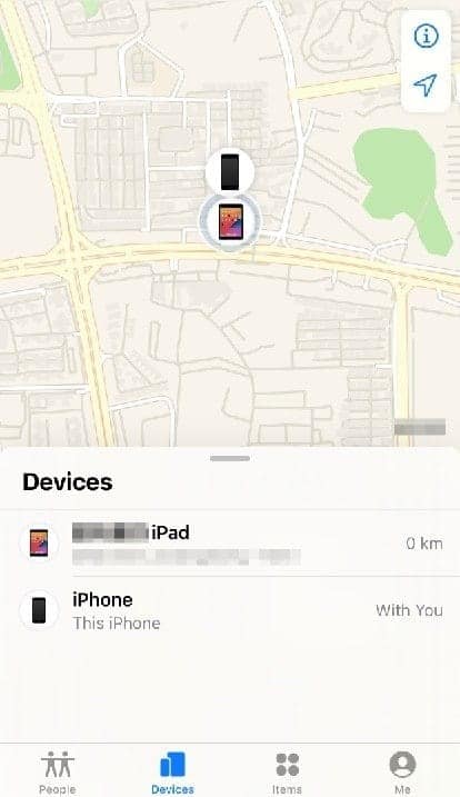 • When you open the app, the app will show your iPad’s location on the map, or it might ask you to choose the device when/if the account is signed in on multiple devices simultaneously.