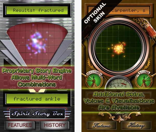 This ghost app is called Spirit Story Box, and according to the website, the “exclusive story engine may allow spirit energy to communicate with multi-word answers.” It also has “mesmerizing energy swarm visualizations.” If you are a non-believer, just think of this as a random word generator packaged as something more sophisticated.