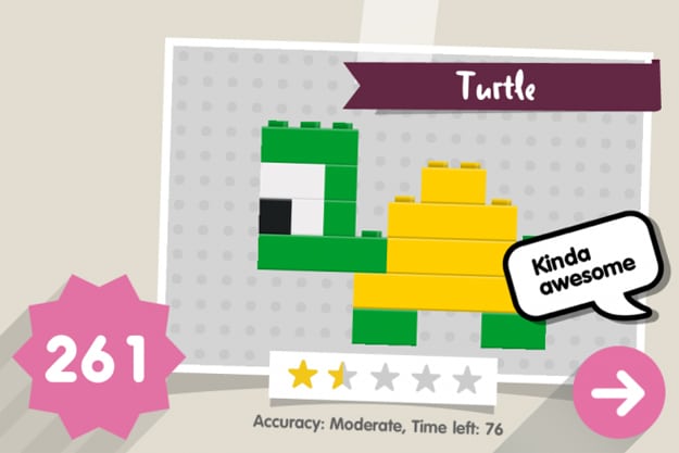 Next, you place your build on the “build mat” and the app scans it. Now you can see your build on your iPhone, and it’s given a rating based on a 5-star system. You will also receive some additional feedback on your build.
