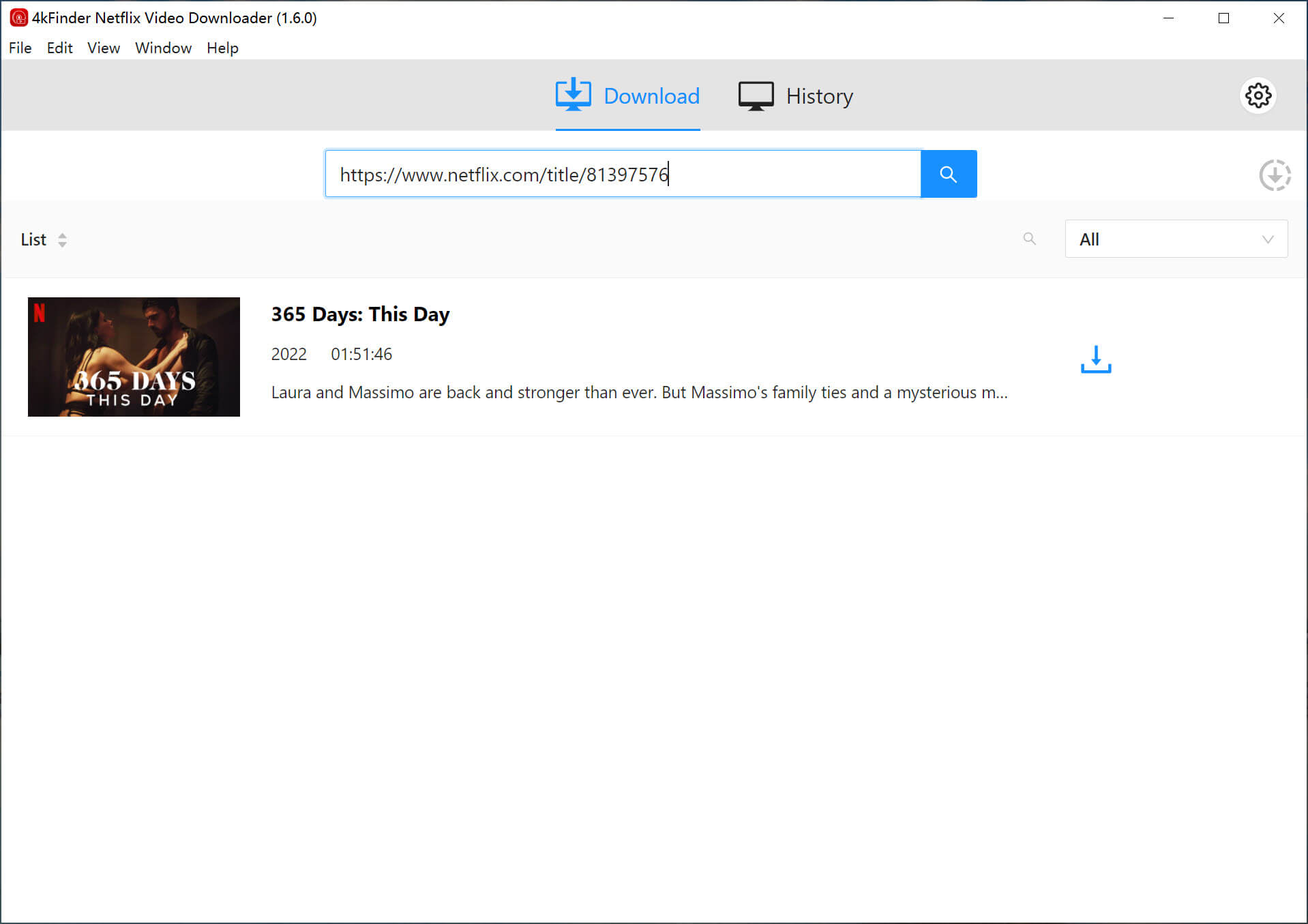 You have two options for adding Netflix movies to the 4kFinder program. One method is to directly paste the movie URL into the search box.