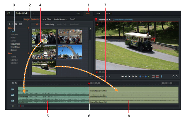 4. To export these videos, go to the Edit tab and put the first video into the timeline. This will be Sequence #1. To create a second one for the next video, right-click an empty spot in the media pane and select Make → Create Empty Sequence.