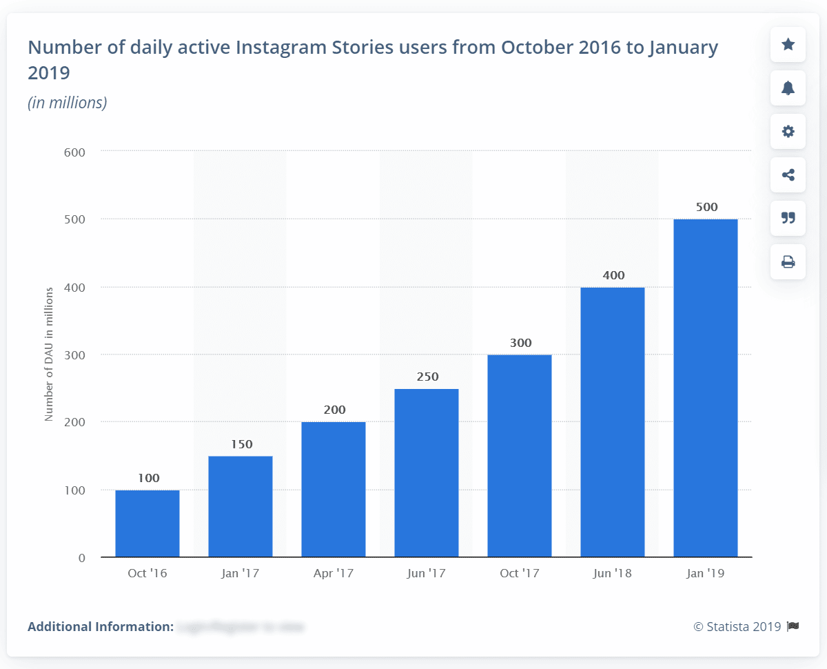 Unless you’ve been living under a rock for the past few years, you’ve probably noticed the rise in social media stories and the story format. In fact, according to Statista, daily active Instagram Stories users increased from 150 million in 2017 to a whopping 500 million in 2019.
