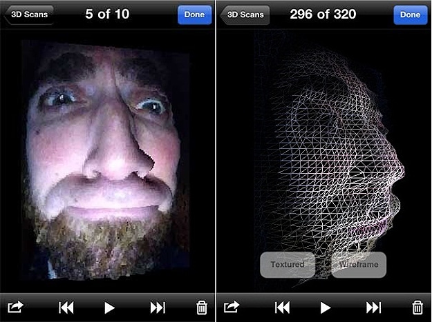 It all got me thinking about the possibility of creating creepy 3D carbonite-looking images of ourselves. Wouldn’t that be fun? It didn’t take much research to find out that not only can we do that, we can do it from our iPhone! About four months ago, the world’s first app which acts as a 3D scanner for the iPhone was released. The guy that developed it, Grant Schindler, created it right down the street from me at Georgia Tech. According to the video below, this Trimensional app uses the phone’s front-facing camera and light projected from four directions to generate a 3D model. Since a front facing camera is required for this app, it is only compatible with the iPhone 4, iPod touch 4th generation, and iPad 2. Grant is also working on an Android version.