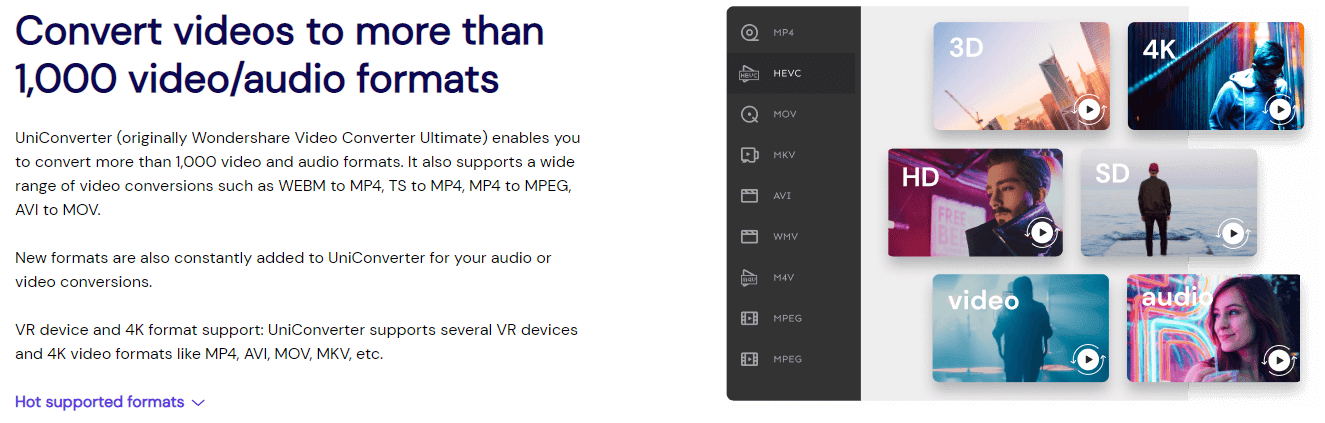 UniConverter can convert videos to pretty much every single device on the planet that has a screen. At least that’s what it feels like. If the device you want to convert to is not supported, well, then I am quite sure that the developers are working hard at implementing it into their software. Why not reach out to them and suggest a certain implementation? I am sure they would love to get their users’ suggestions for improvements. Before you contact them, however, have a look at this list of devices that UniConverter supports.