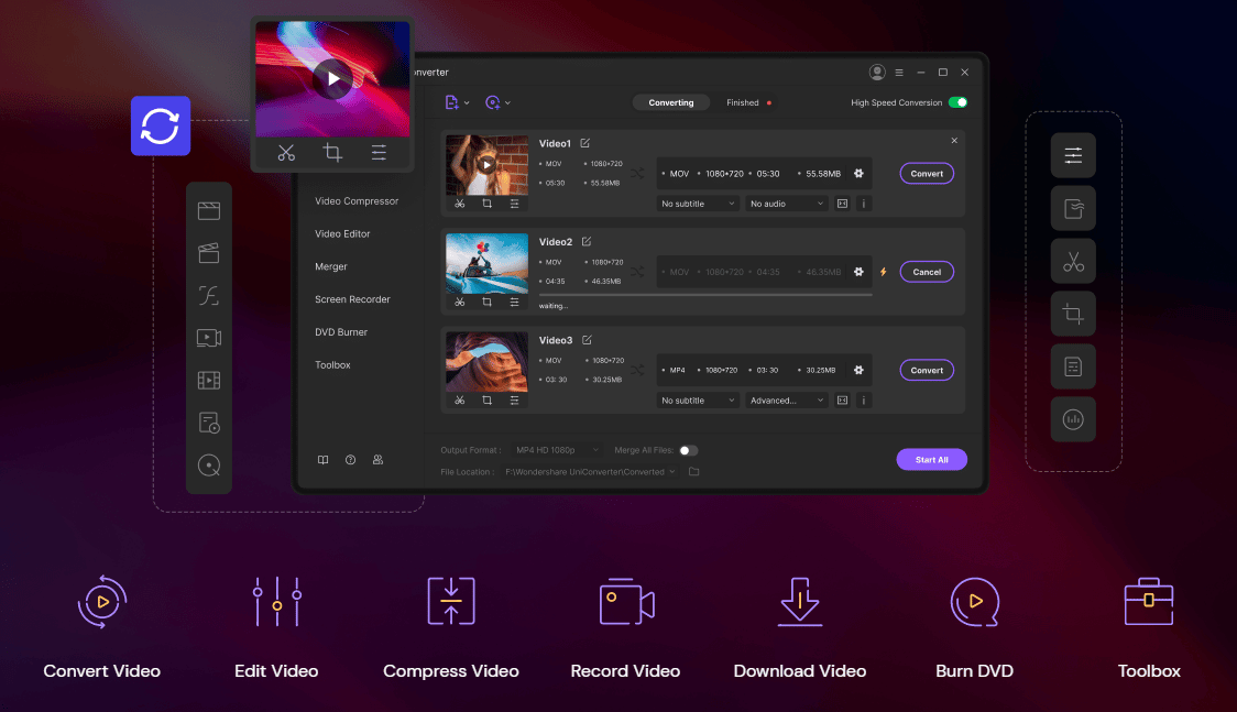 Taking a quick look at the feature list on the official UniConverter website, you quickly understand that this is not your everyday video converter. It’s much more than that and then some. The user interface is clean, professional, and easy to navigate the most prominent features such as convert video, edit video, compress video, record video, download video, burn DVD, and not to forget the toolbox that is filled with goodies.