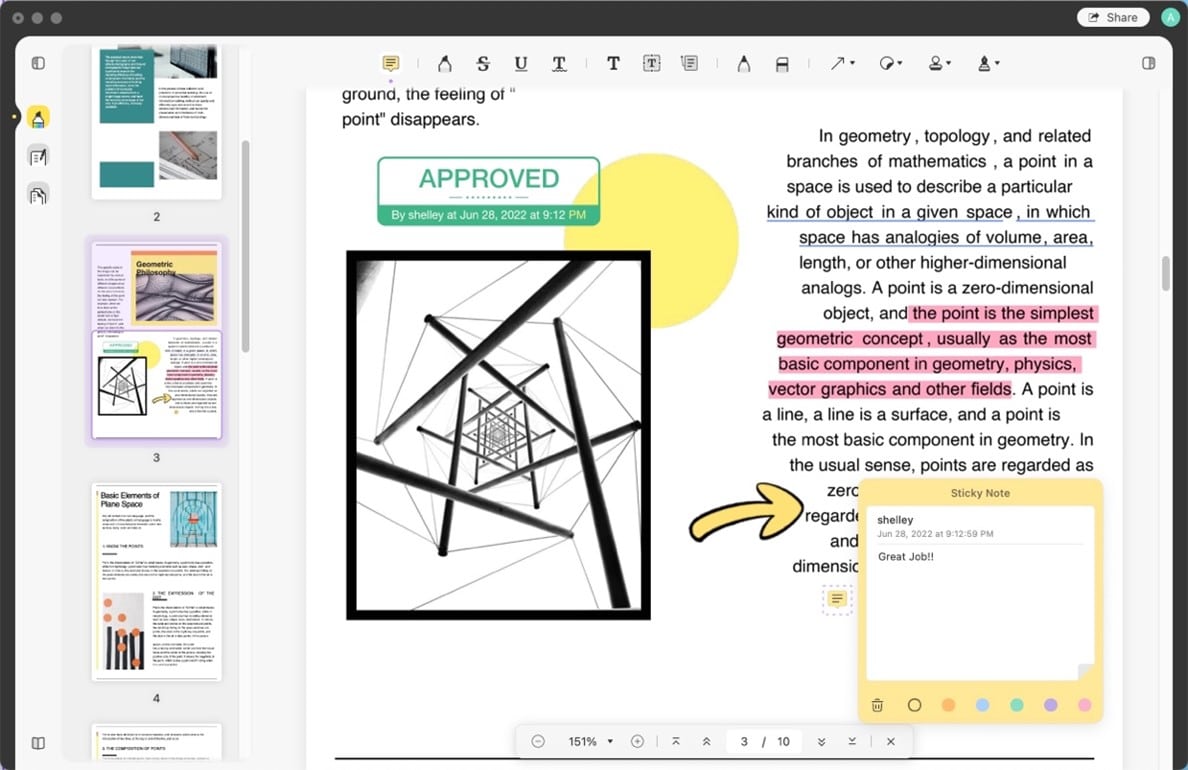 - Annotate PDF: On paper, marking is essential, especially when highlighting key portions. Using the UPDF’s annotation feature can help you work faster and more efficiently. In addition to taking notes, you may highlight, underline, and strike out certain sections of important documents using this innovative tool. Shapes and text boxes may speed up and simplify the process of adding text. Sticky notes will be readily available to you as you work your way through your PDF.