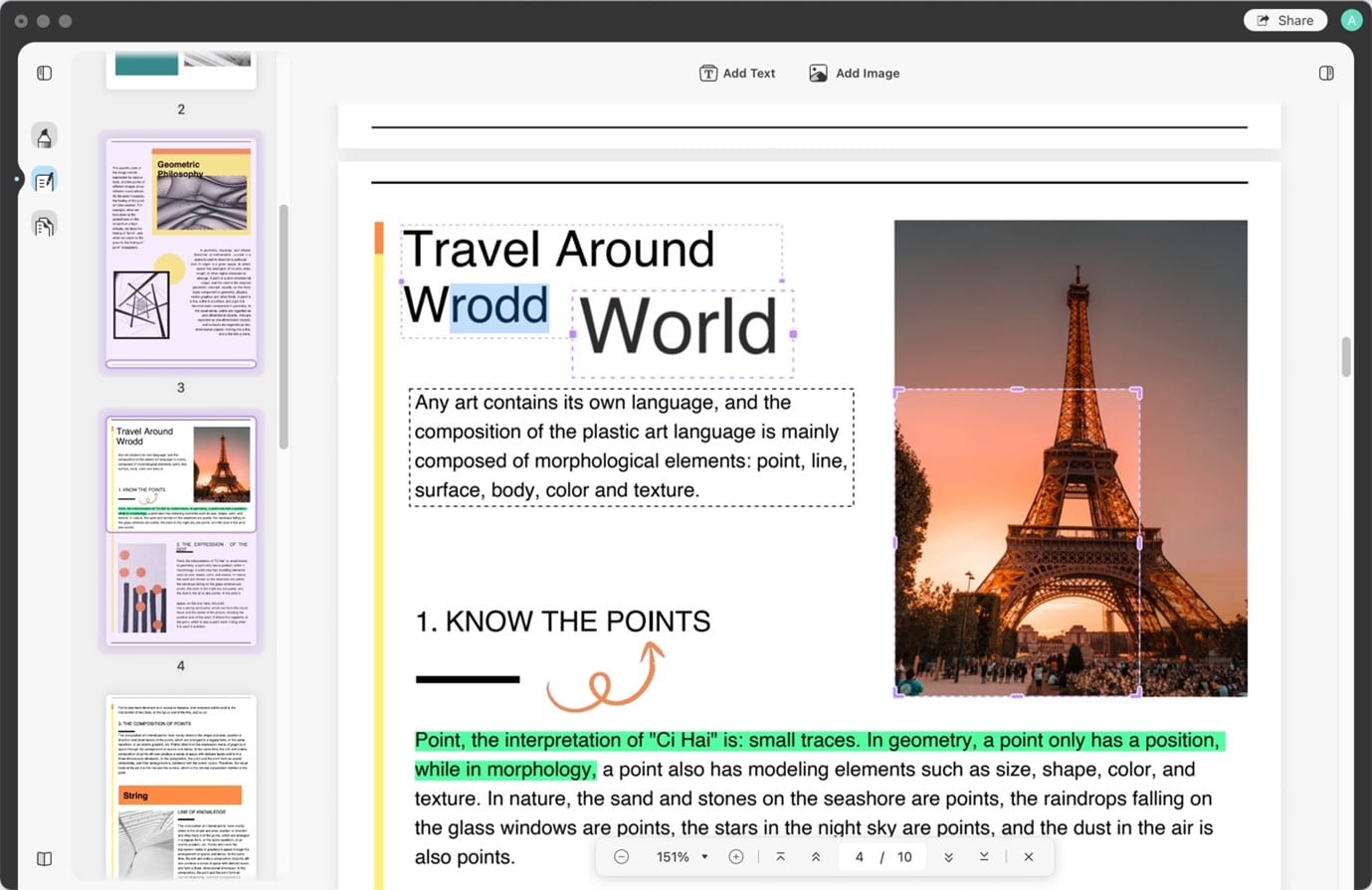 - Edit PDF: In this simple software, you can change the font style, color, and size of the text in PDF files. When working with PDFs, you may achieve a neat and tidy layout by adjusting the text orientation as necessary. Your PDF files are completely in your control because you can cut, rotate, edit, remove, or delete images.