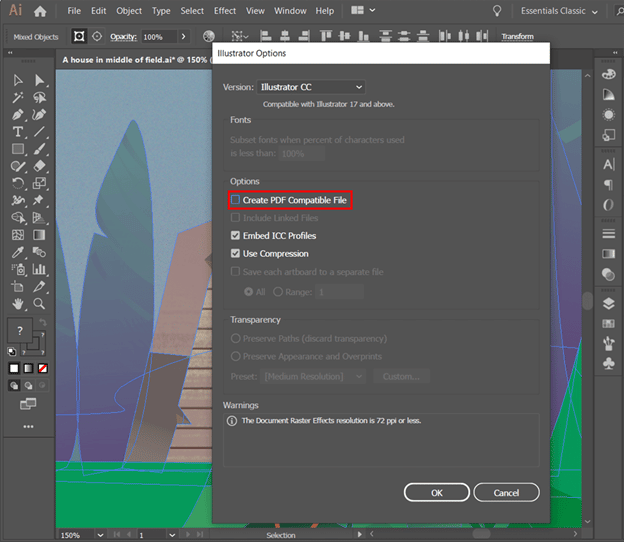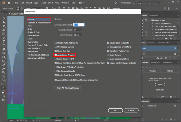 Step 2. Deselect the “Anti-aliased artwork” option and press OK.