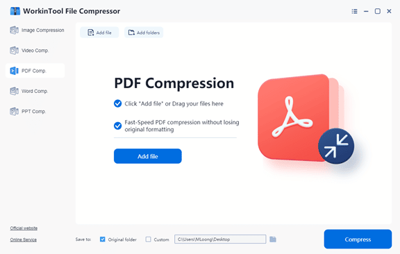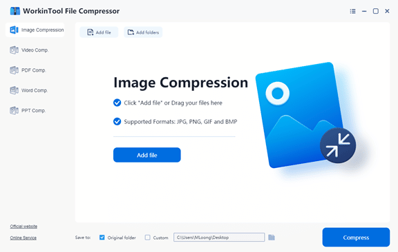 Well, WorkinTool File Compressor is the leading subject of today’s review. It is a newly published file compression software. In order to satisfy users’ need to compress files to a minimum without losing quality, WorkinTool has made it to be able to customize various settings. Plus, it is 100% free to use all the functions it can provide. Now, let’s dive into the very detailed review of this amazing compressing freeware.