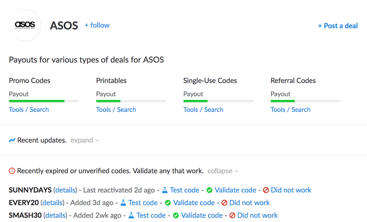 Become a part of a community that wants to provide the best deal sharing site possible. Plus, you can be paid while doing it! In the image above, you can see users testing, validating, and editing promo codes.