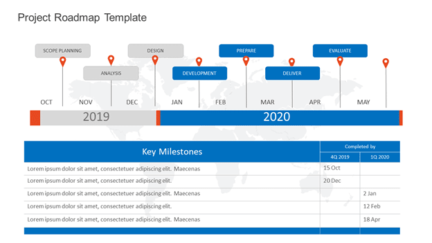This is a complete project roadmap template that will help you showcase everything from scope planning to the project closure of the project. As you can see, the template has been divided into various phases that are placed on a timeline. The template can be used to track your project from start to finish. You can also mention some key milestones and their completion dates.