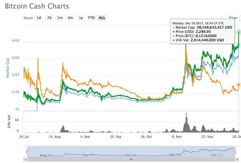 It is never too late but you definitely should educate yourself on how the whole thing works before you consider buying any cryptocurrencies. If you have say $500 or less you want to buy then spending it on Bitcoin doesn’t make a lot of sense as you’ll pay over 5% in fees alone and if fees keep going up then you’re getting hit again on the next transaction. At the moment Ethereum is now running up in fees which is making Bitcoin Cash the ideal coin to pick up. While writing this article, within a few hours the price of Bitcoin Cash jumped by from $2036.76 to $2251.16 and on December 20th, 2017 Bitcoin Cash broke through and hit 4k. Bitcoin Cash has fees that are around under 20 cents per transaction so you could buy in for a smaller amount where your $500 is just under 0.25 BTC. While Bitcoin Cash remains low, this is the one coin we recommend people pay attention to.