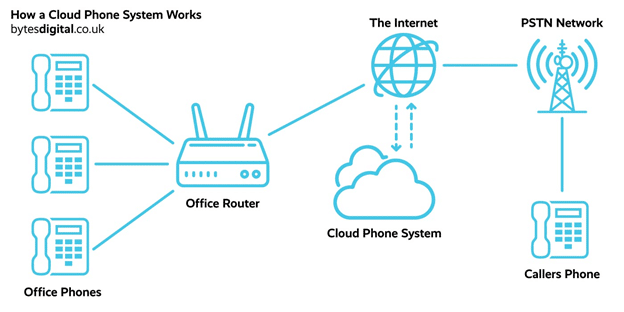 Cloud phone systems take all that hardware out of the office equation, running communications via the internet instead. Through voice over internet protocol (VoIP, or just IP), the user’s voice is converted to digital packets and stored in the cloud, there to be accessed by the person on the other end of the call.