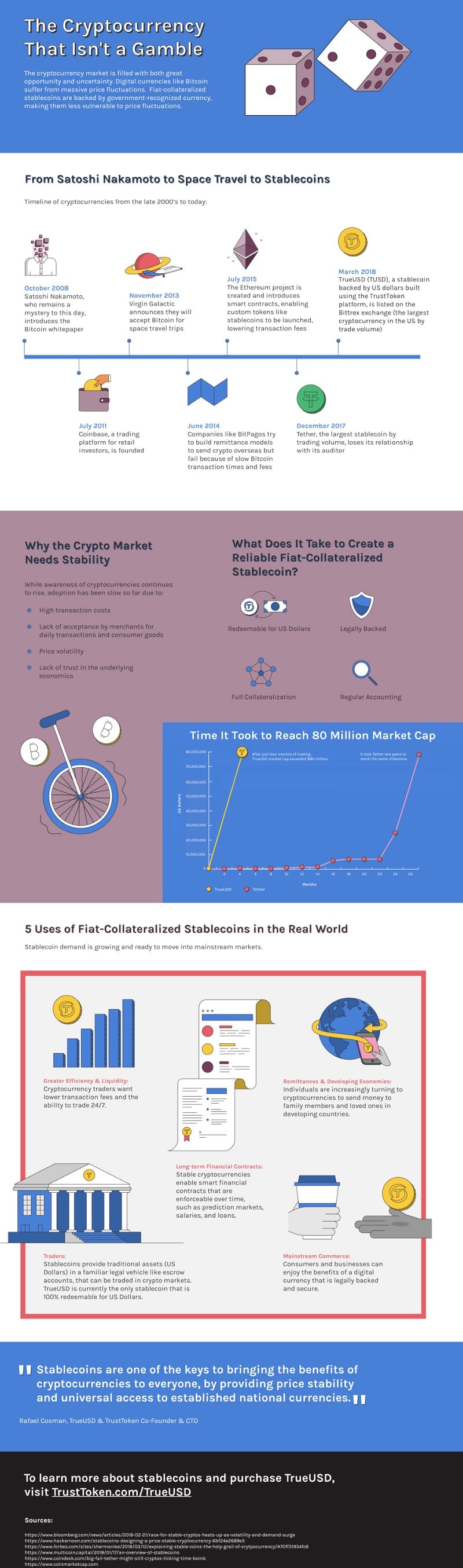 To learn more about tthe history of cryptocurrencies, why the market needs stability, and how fiat-backed stablecoins work, read the rest of this infographic from TrustToken.