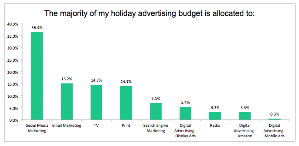 With the holiday season right around the corner, social media channels will go from busy to bubbling with activity in just a few months time. According to location-based marketing firm Reveal Mobile, of the 260 small to medium business owners and managers surveyed, more than 36% of the respondents candidly hinted at spending a major portion of their ad money on social media marketing.