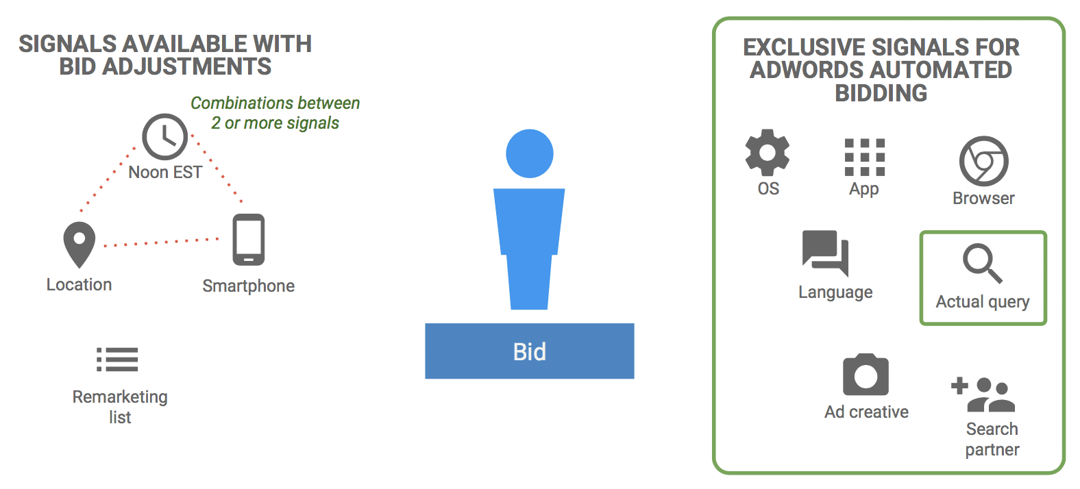 Instead of manually adjusting bids for each ad group and individual keyword, there’s a much better alternative that saves you both time and money in the long term. Smart Bidding is a set of automated bidding strategies in AdWords that make it easier for advertisers to automatically manage their bids.