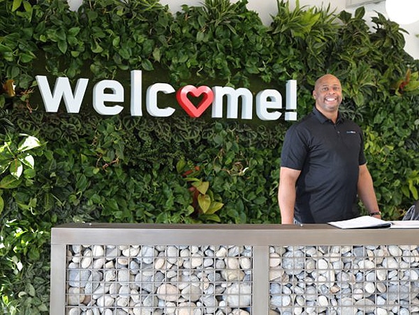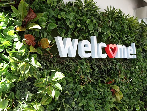 The first thing you may notice in the pictures below is the Welcome area which is covered in growing plants which symbolizes life. Each person also gets a plant for his or her desk. There is also a massive staircase, and every person is encouraged to take the stairs when going between floors. Imagine how much healthier that is than taking an elevator.