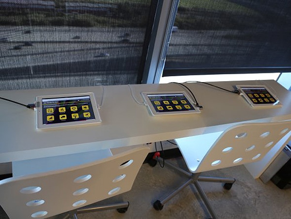 There are inspirational quotes written all over on the walls, and if you want more inspiration, you can scan the inspiration bar code for more. If you need a conference room for a meeting, you can reserve one via the Steelcase RoomWizard using Outlook. I assume everyone leaves work at the same time since a bus drops everyone back off at home at the end of the day. If I worked there, I might never want to leave!
