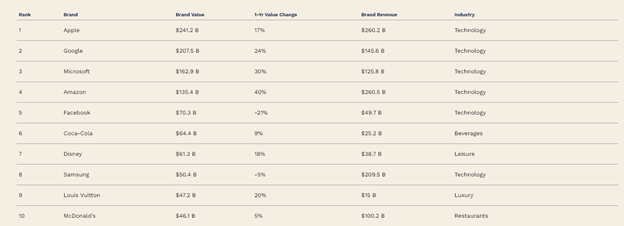The second ranking of the most valuable brands was compiled by Forbes magazine. Apple has led it for ten years in a row. Apple and Google are the only trademarks in history to be valued at over $200 billion. Five years ago, the difference in price between these two corporations was twofold.