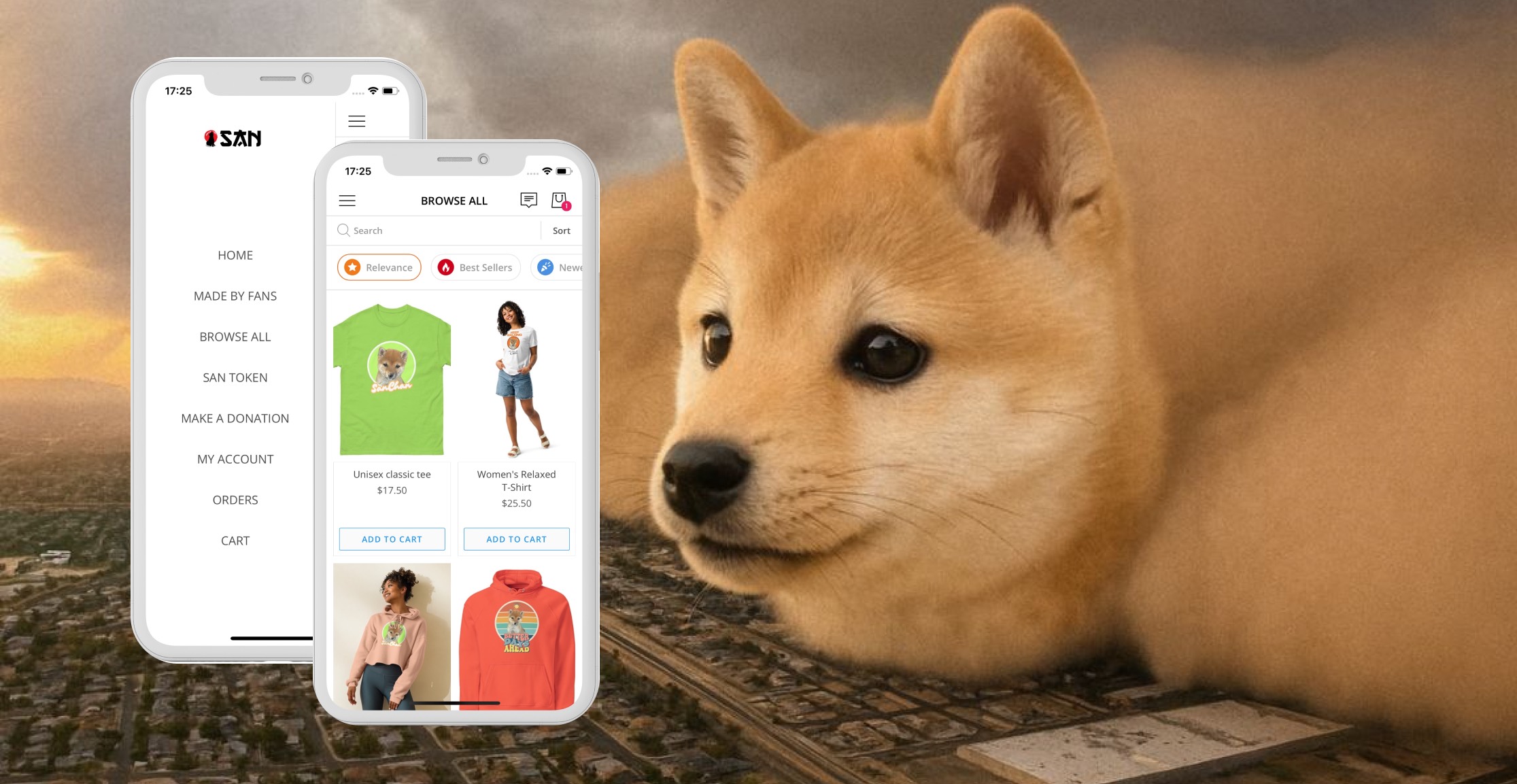 “The merch is a pure non-profit initiative as no one wants to make money from fans,” says Kantaro. “Our Shopify to Solana technology automatically buys and burns $SAN tokens with profits from every sale.”