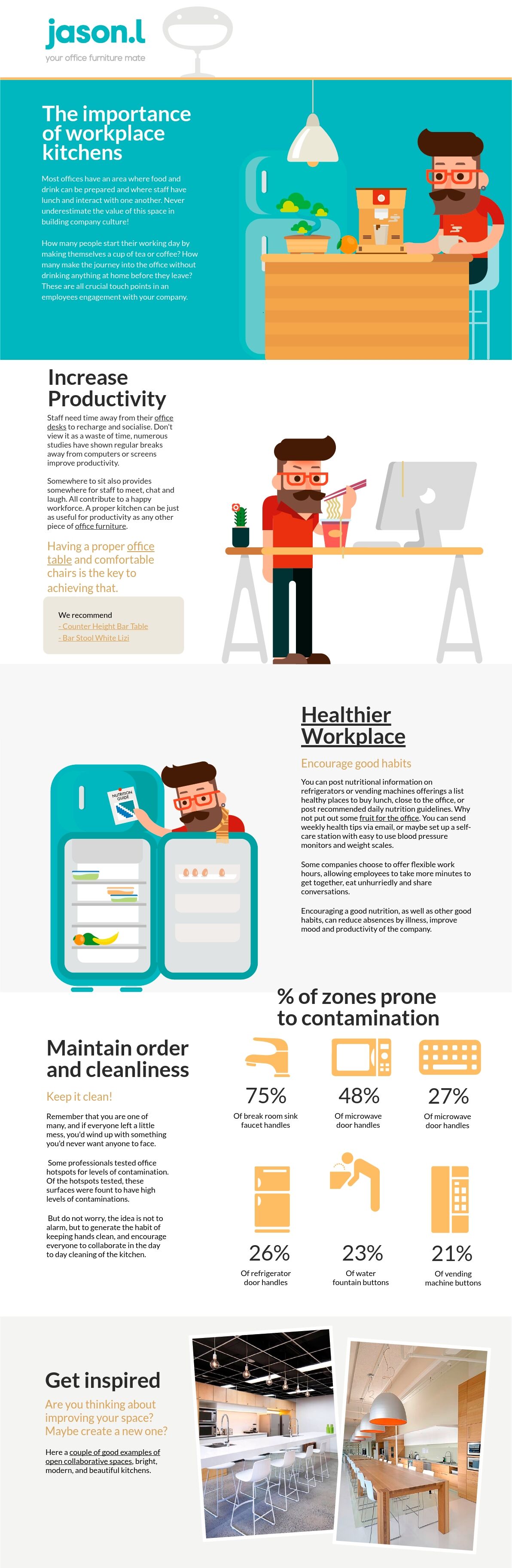 It is a fact that most offices these days run on caffeine, and a majority of the employees pay a visit to the coffee machine at work even before they check their inbox. While their desks are where all the great work happens, it is the kitchen area of a workplace that keeps the employees energized and refreshed throughout the day. It is not just a place to grab a bite or a drink but also to take a break from the hectic routine and to catch a few breaths in between grueling meetings. This is why workplace kitchens form an essential part of a well-designed office space and come with a bounty of benefits, as described in the infographic below, created by jason.l.