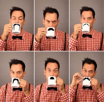 These mugs below are special because they come in a set of six, each with a different mustache so