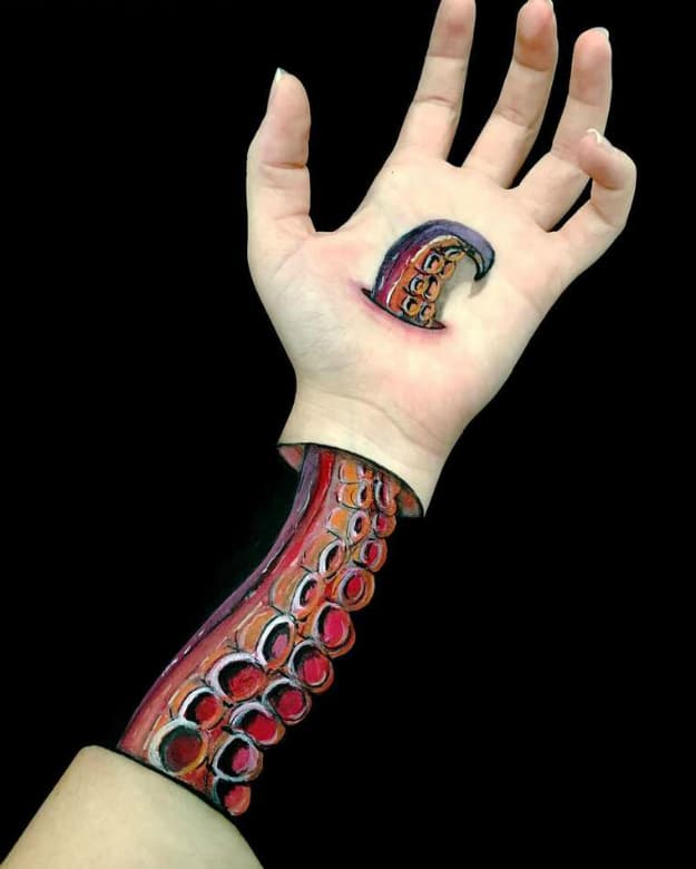 We have compiled 20 of her most amazing 3D body paintings for your viewing pleasure. Have a look at them and tell us in the comment section below which ones you think are the best. Our favorites are probably the twisted fingers and arms. They make your head hurt to the point where you need to look at something else for a while. If you know of any other body painting artists, please let us know down below as well. We are always interested in featuring more artists here at Bit Rebels. – Lisha is always uploading new ones to her Instagram account. Don’t forget to check them out as well.