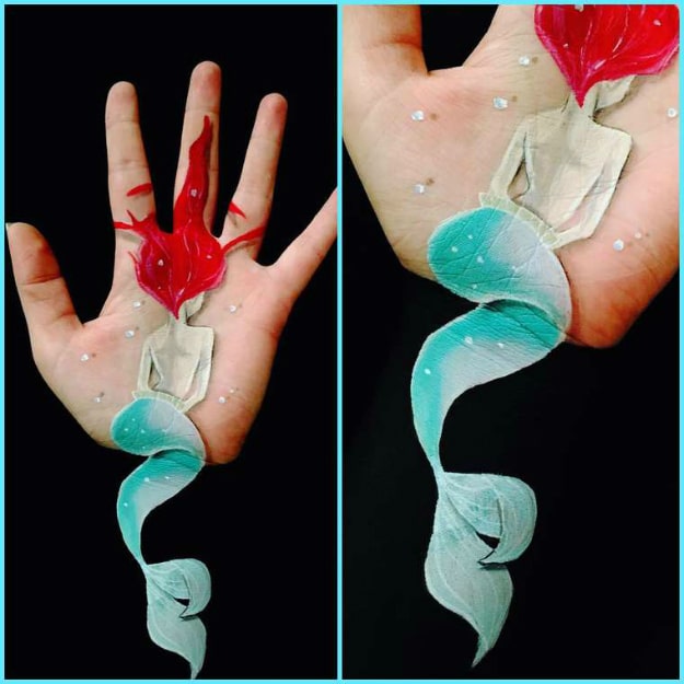Unlike Alexys, who uses her upper body, Lisha uses her hands and arms as her canvas. Intricate patterns and details make them into whatever she wants them to be. By adding some clever 3D trickery and a black background, she’s able to make her arm look like it doesn’t have any flesh. It’s one of those “Whoa!” moments.