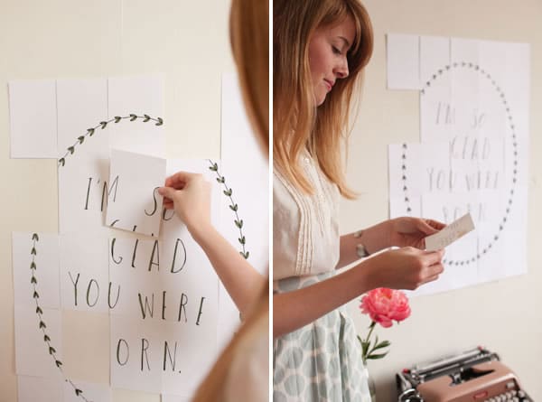 This is such a neat idea, but you’d have to have a lot of crafty friends to pull it off. Jordan Ferney at Oh Happy Day created a downloadable template that you can use to create a happy birthday puzzle for a dear friend. You simply email about 25 people their piece of the birthday postcard puzzle. They print out their part and mail it with a note on the other side. The birthday girl or boy will receive 25 postcards in the mail, and he or she can assemble them all to complete the big birthday puzzle with a special message. This is such a creative idea, but if even just one person doesn’t do it, the puzzle won’t be complete. It would be fun to try anyway though! You can learn how to do this at Postcard Birthday Poster DIY.