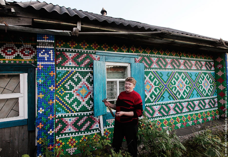If you were retired, and if you lived alone in the Siberian taiga in Russia where there are only about 3 people per square kilometer, what would you do to entertain yourself? Maybe you’d be on social media sites constantly, maybe you’d get in the best shape of your life since you could exercise all day, or maybe you’d decorate the outside of your house with 30,000 plastic bottle tops like Olga Kostina.