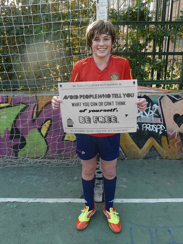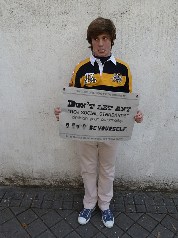 The grandmother’s advice was spicy and sassy to say the least. Market Covert decided to take the grandmother’s tips and put a little bit more of a positive spin on them. His collection is called Techy Little Nephew Tips. His nephew in these photographs is definitely a cutie. Nice soccer shoes. :)