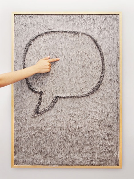 This is such a great design, and it totally goes in the category of “Why didn’t I think of that?” Imagine what it’s like to run your hands across faux fur, whether it is a coat or a pillow or whatever. All the color changes hue with the direction of your hands, right? By using your fingers, you can make designs and letters in the fur, right? Can you picture it?