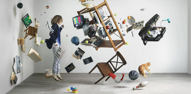 Nam, a Japanese graphic/art collective based in Tokyo, created these fun images below showing us a world with no gravity. There are currently over ten artists in this group. They work together to push the boundaries in the world of visual arts. As you see, this is a creative combination of graphic design and photography. To me, the feel of this is very expressive, fun and simply magical. Great job!