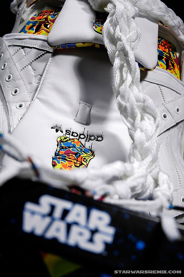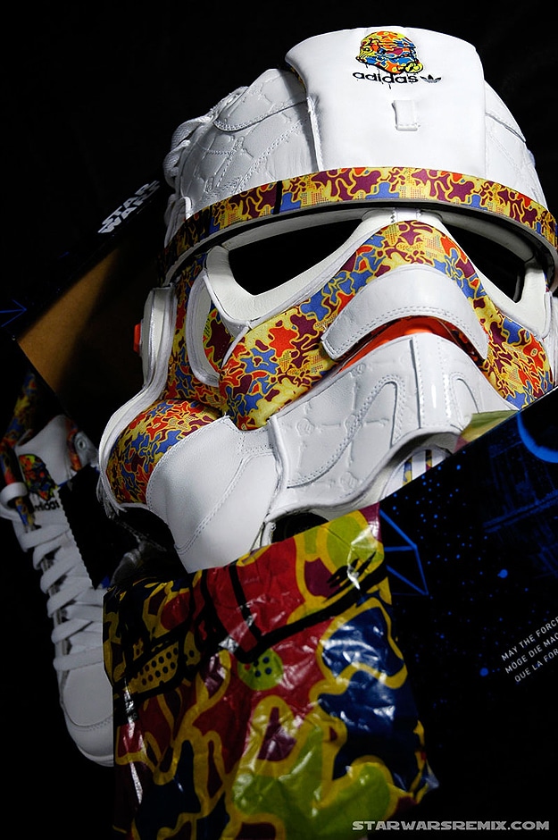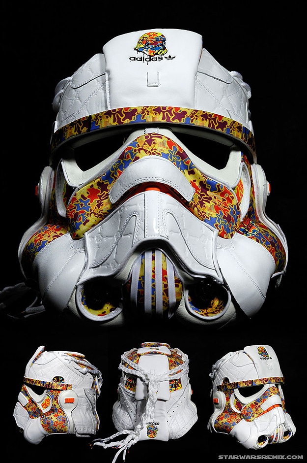 Freehand Profit created these specifically for Star Wars Remix. They are part of a larger collection called “The Branding Wars.” This one-of-a-kind Adidas X Star Wars Stormtrooper Helmet is listed on eBay right now. The bidding is already up to over $500, and there are 4 days left in the auction at the time I’m writing this. Wow, as an aside, whoever took these photographs did an excellent job. These pictures are fantastic!