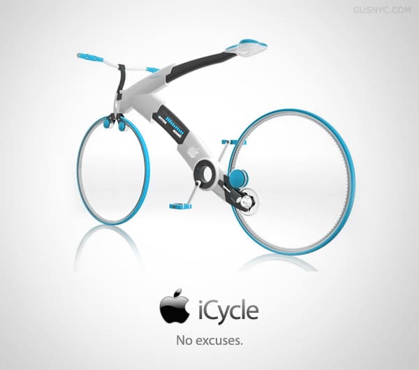 Gusto at Get Up & Support NYC decided to take this idea on, and he designed 10 possible products that could sprinkle our lives with even more Apple flavor. He even elaborates extensively about each one of these and what their exact features and benefits would be. I bet he had a lot of fun designing these. You can read his original article at 10 Possible Future Apple Products. I like every single one of them. I can’t even choose which one of these concept designs is my favorite. I guess if I had to choose one, it would be the iCycle. It not only changes via auto-switch to adjust to the terrain, it also has full iOS/Cloud integration, full iTunes store integration, Nike+ integration, Wi-Fi and Bluetooth technology. Nice job Gusto!