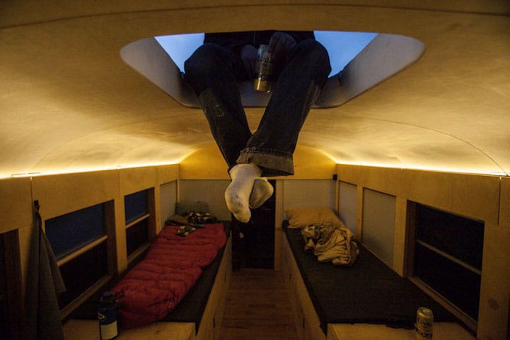 Hank bought this old bus off Craigslist for $3,000. His massive remodeling endeavor became his final project in school. If you watch the video below, you’ll see the shocking before and after photos. Along with his brother and friend, he worked on it for 15 weeks straight. Now that it’s all finished, they’ve decided to take a 5,000 mile trip across the United States. You can track where he is and how the bus is doing on Hank Bought A Bus.