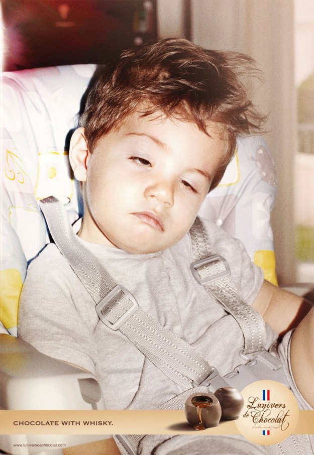 Wow, I never knew until I saw these pictures how much being drunk looks the same as being tired. Although these pictures are controversial, they make me smile because these kiddies are so precious. I don’t know if they would actually make me want to buy these French chocolates though.