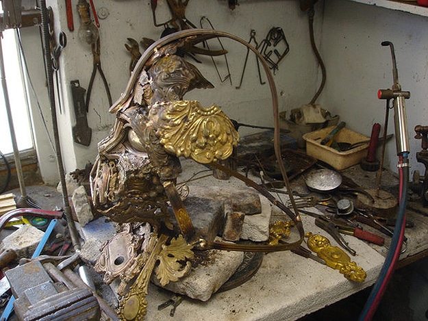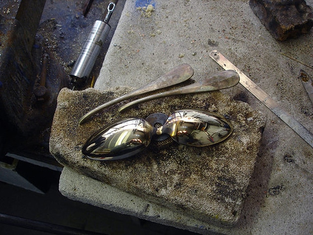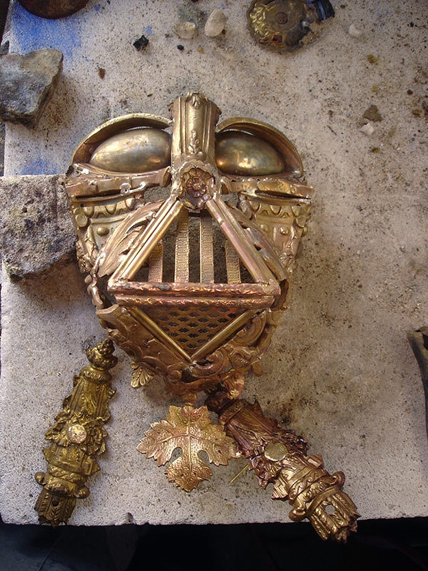 The Darth Vader helmet and bust I’m sharing with you today is a style that I would call steampunk punk. It has that extra layer of punk to it which makes it very unique and very interesting. This was created several years ago by an artist named Alain Bellino. As you’ll see in the pictures, he began this creation by combining two tarnished spoons. He then continued building the bust by adding other old junk to the spoons. He found all of his materials in a cutlery drawer. The rest is history, and a one-of-a-kind Darth Vader bust like I’ve never seen before! Dang, this inspires me to clean out my junk drawer. I wonder what treasures might be hiding in there.