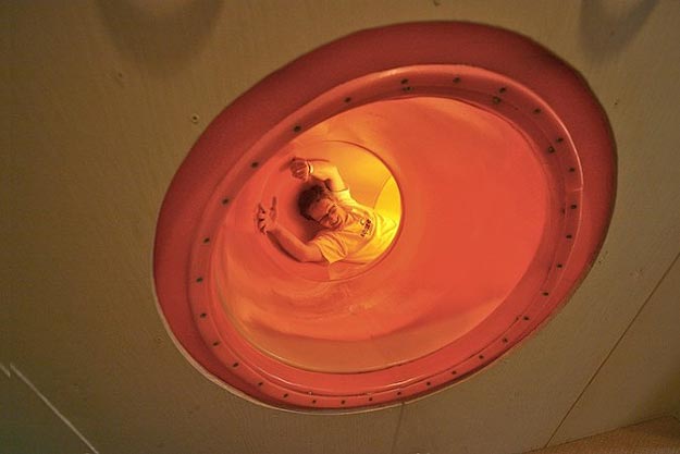 This pirate bedroom was designed by Steve Kuhl for a very special 6 year old geek-in-training. The young boy had a choice between a bedroom designed as a space ship, race car, castle or pirate ship. I would have picked this one too! I love everything about the room, especially the spiral slide. I would have given anything to have something like this when I was a kid! The best part about this is that I bet he can have hours of fun in his bedroom without even turning on the television or the Wii. You can read an interview with Steve about how he went about creating this on My Modern Met.