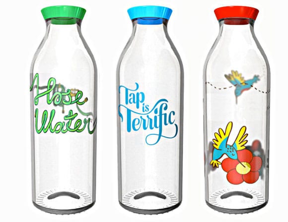 In an effort to get people to drink more tap water, Faucet Face is creating a line of glass water bottles designed by artists. Apparently one of the reasons why we like purchasing our water is because of the trendy looking water bottles. Faucet Face is trying to combat that by creating glass bottles that are just as trendy, but for filling with tap water. The “hose water” bottle is my favorite. It reminds me of running through the sprinkler outside in the summertime when I was six.