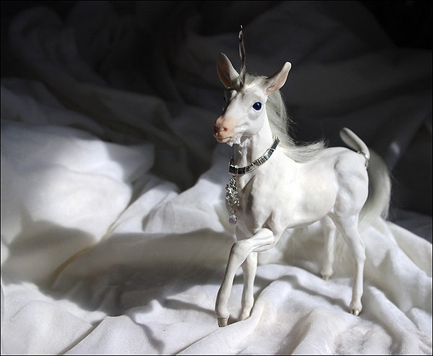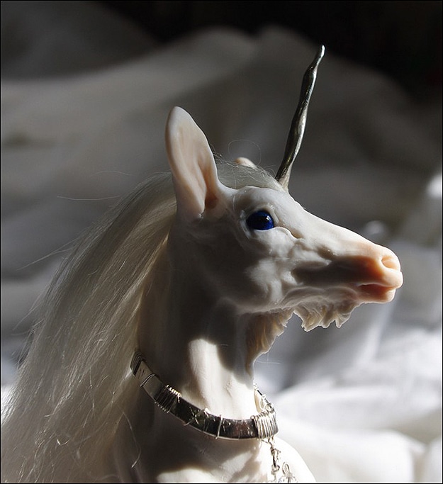 I remember as a little girl always thinking that unicorns were beautiful angelic creatures who innocently frolicked in the forest, adding love and light everywhere they pranced. In my mind, you could always find a rainbow close to where the unicorns lived. Of course, when I thought that, I was five. The artist who created these had a different idea about what a unicorn looks like.