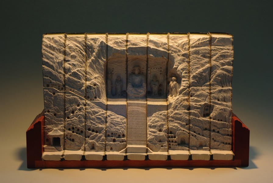This book landscape artwork is cut out from the body of one or more books. It is stunningly detailed, and it gives a sense of an alien world in many cases. I also get a hint of some inspiration from the massive scenes in The Lord of The Rings in many of them. Maybe it is the lighting and the details displayed, or just a random connection my brain managed to pull together. Either way, there’s nothing else I can say about these books since my jaw just dropped to the floor and my head is spinning out of sheer wonderment. This is the kind of art that blows my mind whenever I stumble upon it.