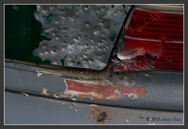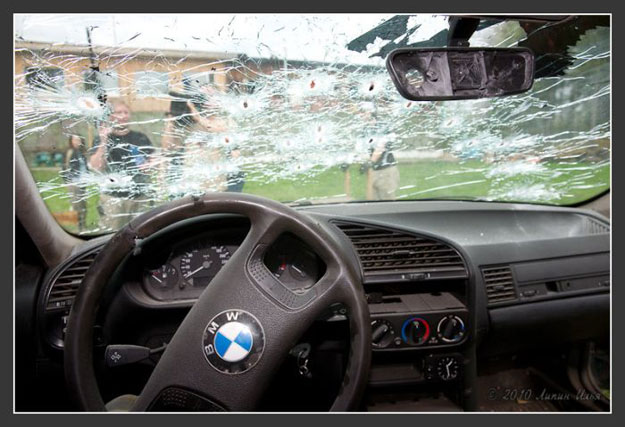 So when I read this story about bullet hole art, I knew instantly it had to go on Bit Rebels. A Russian artist commissioned some dudes really good at shooting guns to decorate a BMW 3-Series with some bullet hole flowers. The car was marked with where they were supposed to shoot it, and as you can see from the pictures below, they missed a lot, but they sure had fun! This whole thing gives new meaning to the phrase “Flower Power.”