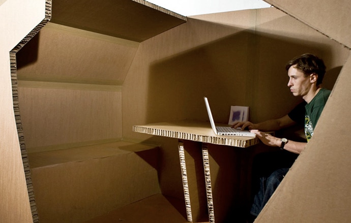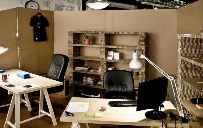 Just last week I wrote about a Cardboard Restaurant that is surprisingly elegant and beautiful. Everything in that place (except the food and the servers of course) is made with recycled cardboard. Today I have a few other cardboard creations to share with you, and they come in the form of an office desk design and some other furniture. You may wonder why anyone would even want an office desk design like this, or at least I did. After thinking about it more, I can think of three kinds of people who would like this. People who want the most recycled desk ever, people who want a super cheap desk design, and hipsters who think it would make them look trendy and intellectual.
