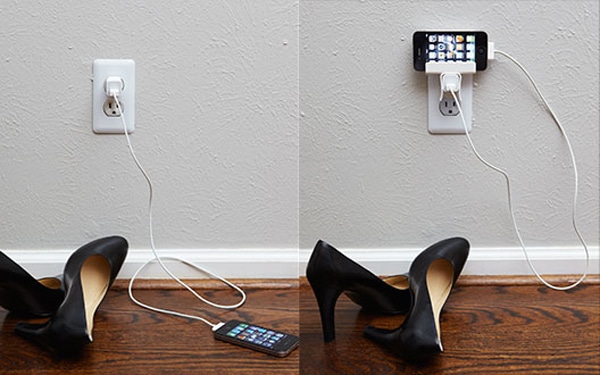 This little iPhone holder is one of those designs that just makes you wonder, “Why didn’t I think of that?” It’s exactly what so many of us need, and in an odd way, there is something cozy about it too. How many times have you plugged your iPhone charger into the wall and then laid your iPhone on the floor while it charges? I do it all the time. Think about that for a moment. Isn’t it strange that we do that without giving it a second thought? Wouldn’t it be nice if our iPhone didn’t have to lay on the floor with the cord dangling down? Have you ever tripped on it while it’s charging? I have.