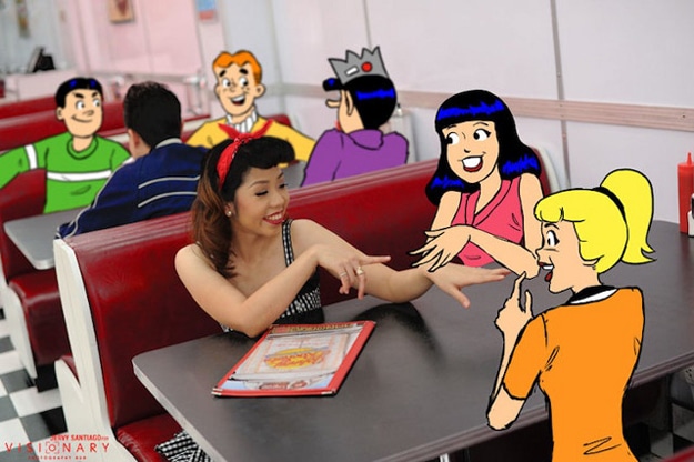 This romantic marriage proposal via Lego stop motion is one of my favorites. These Alice in Wonderland wedding photographs are also incredible. Today I’d like to share with you another couple who wanted to incorporate something unique and unusual into their engagement photographs. They decided to use Photoshop to combine their pictures into the world of Archie and the Gang from the comic books we all remember. These are so well done! You can view the entire collection of photos on Visionary Photography Hub. We wish Bryan and Anne a wonderful lifetime of happiness and joy!