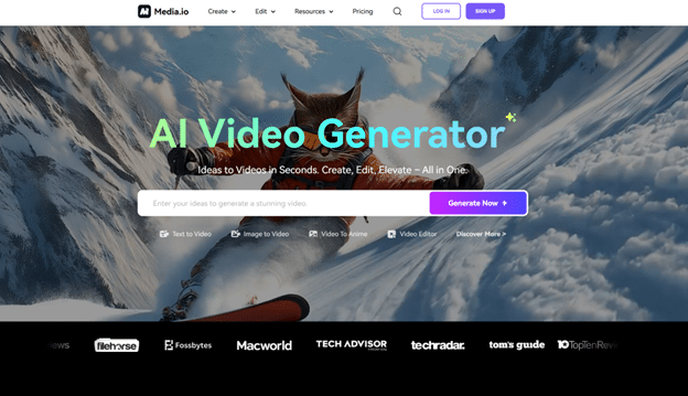 Media.io offers a free-to-use AI Video Generator that doesn’t require downloads or installations. The platform provides.
