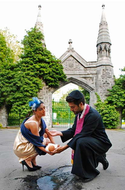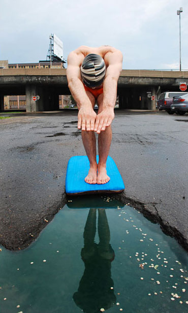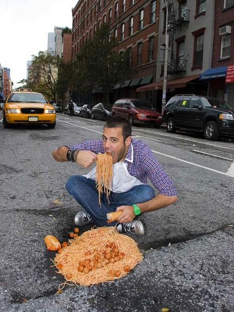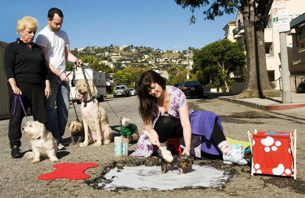 What happened next was creative, inspiring and will make you look at potholes a little differently from now on. They staged photography around the potholes by creating interesting scenes. Their work has become so popular that they have now photographed potholes in not only Montreal, but New York City and Los Angeles. This is a small sampling of their work.