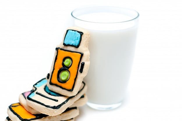 In that one cookie below, is that blue square on top a flashcube? These are just so much fun. You can pick these up at DIY Photography for 18 bucks. If you would like some other creative cookie ideas, check out how to use your holiday cookie cutters to make Star Wars cookies (you gotta see this, it’s nuts!), and these angel wing cookies that hang on the side of your coffee mug (for ultimate cookie carrying efficiency). Nom nom!